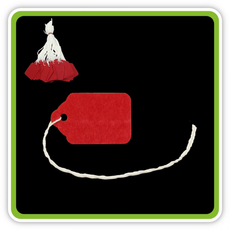 Quality Strung Red Tickets 42mm x 27mm Strong and durable red tickets, which are pre-strung for easy use and are ideal for pricing, colour coding, identifying and labelling a wide range of products, from small items of jewellery to larger items of clothing etc.
